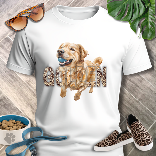 Golden Retriever TShirt | Leopard Varsity English Golden Retriever Tee