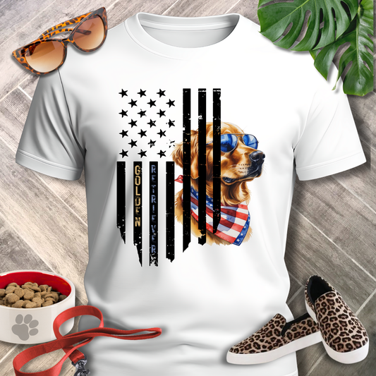 Golden Retriever Shirt | Handsome Patriotic Golden Flag Shirt