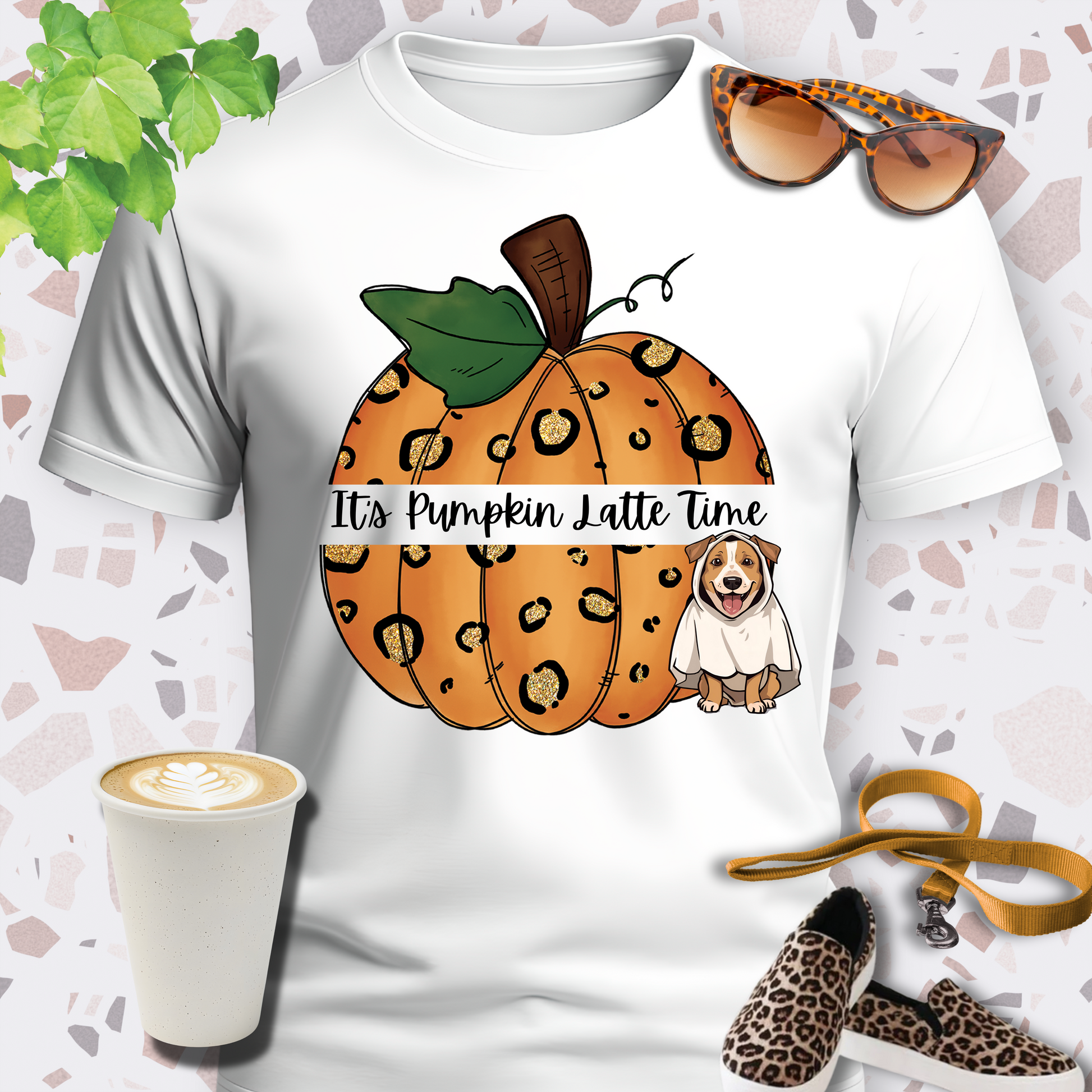Fun “It’s Pumpkin Latte Time” slogan with pumpkin graphic.  Available in fall-ready shirt colors.  Sizes Small through 2XL for the perfect fit. A seasonal essential for dog moms and pumpkin lovers.